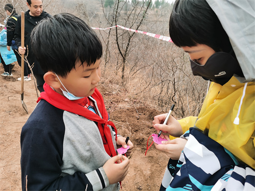 種下一棵綠樹(shù),就是種下一份希望。經(jīng)過(guò)大家的辛勤勞作,大家圓滿完成植樹(shù)任務(wù),一顆顆樹(shù)苗迎風(fēng)而立,為紅葉谷增添了絲絲綠意,帶來(lái)了勃勃生機(jī)。大家紛紛在卡片上寫下美好心愿,懸掛在自己種的樹(shù)上,祈福未來(lái),祝愿美好,讓今天的一切變得更有意義。大家一起為本次植樹(shù)的區(qū)域取名為“銀豐公益林”。